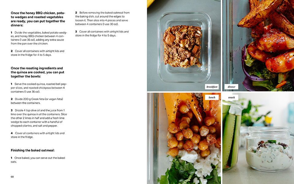 The “full week instructions” are laid out in a specific order to make all our meals and snacks in the fastest way possible. For example, if there’s anything to get in the oven we’ll usually get that started first and then prep some other things while that’s cooking away.